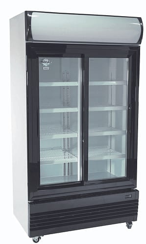 - Przeszklona szafa/witryna chłodnicza z drzwiami przesuwnymi LG-1000S o poj. użytkowej 1000 litrów z obudową metalową malowaną proszkowo na kolor biały