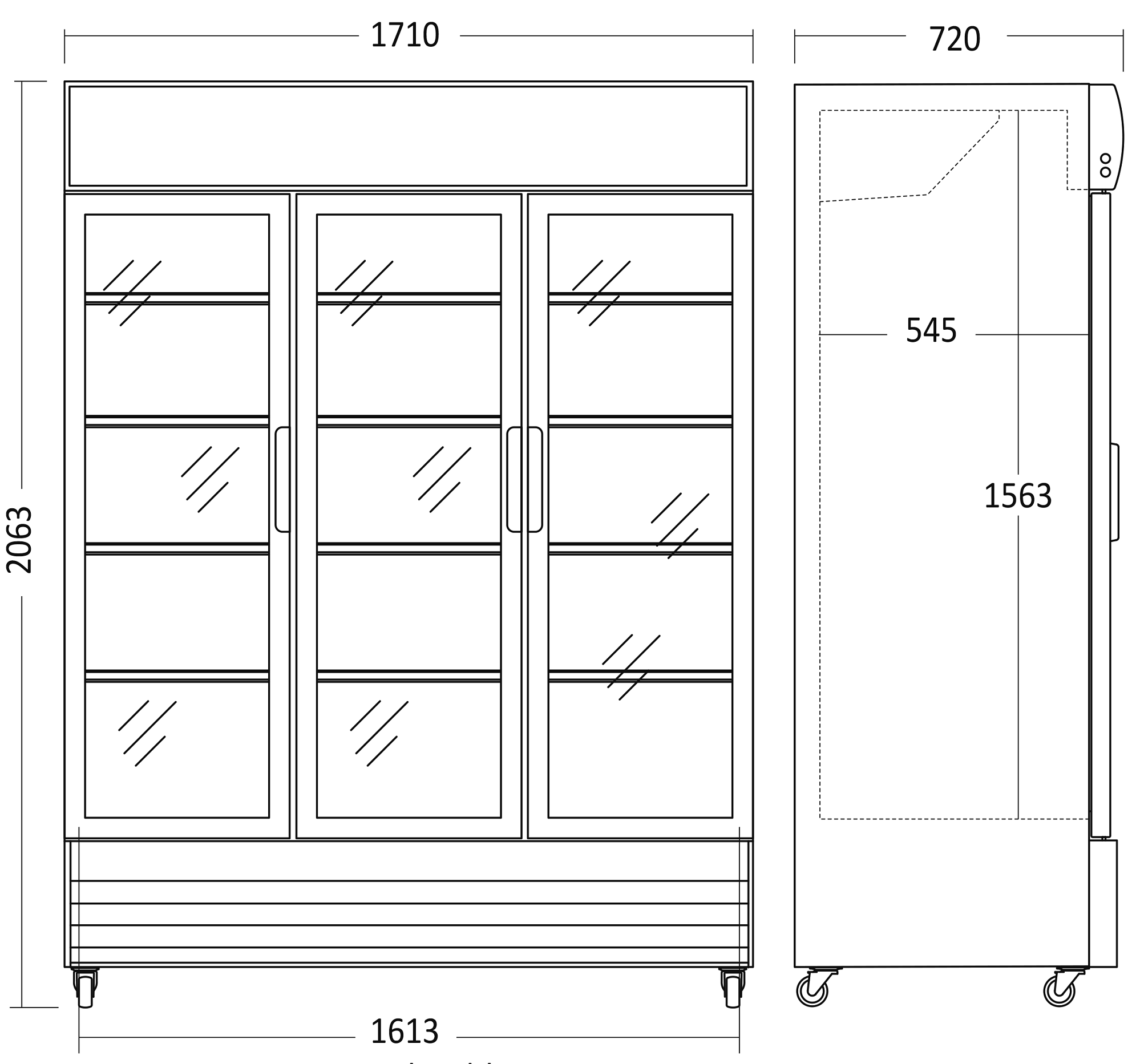 Szafa chłodnicza przeszklona | 3-drzwiowa | SD1502BHE | 1383 l (RQ1500H-BLACK)