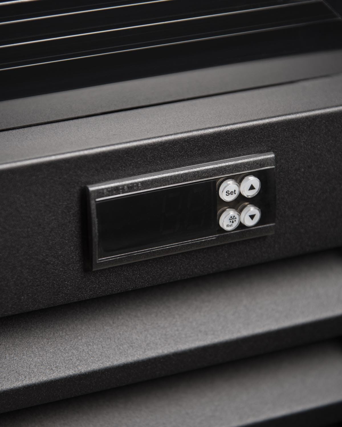 - Wnętrze szafy chłodniczej jest doświetlone oświetleniem LED, podkreślającym ekspozycję produktów.