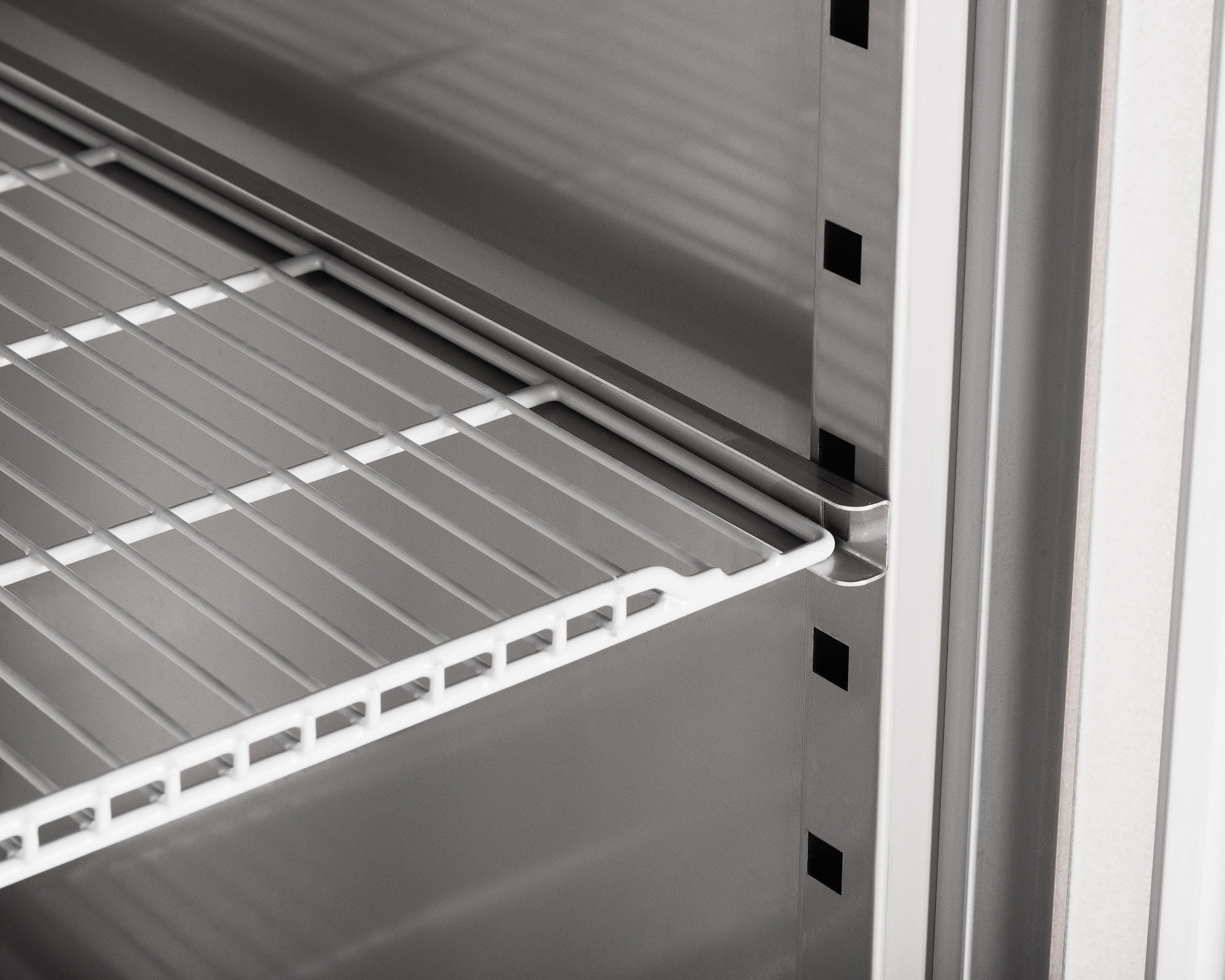 - Komora szafy z zaokrąglonymi krawędziami, dno z jednego arkusza blachy oraz otwór odpływu w dolnym panelu zapewniają łatwe czyszczenie i zapobiegają nagromadzaniu się zanieczyszczeń