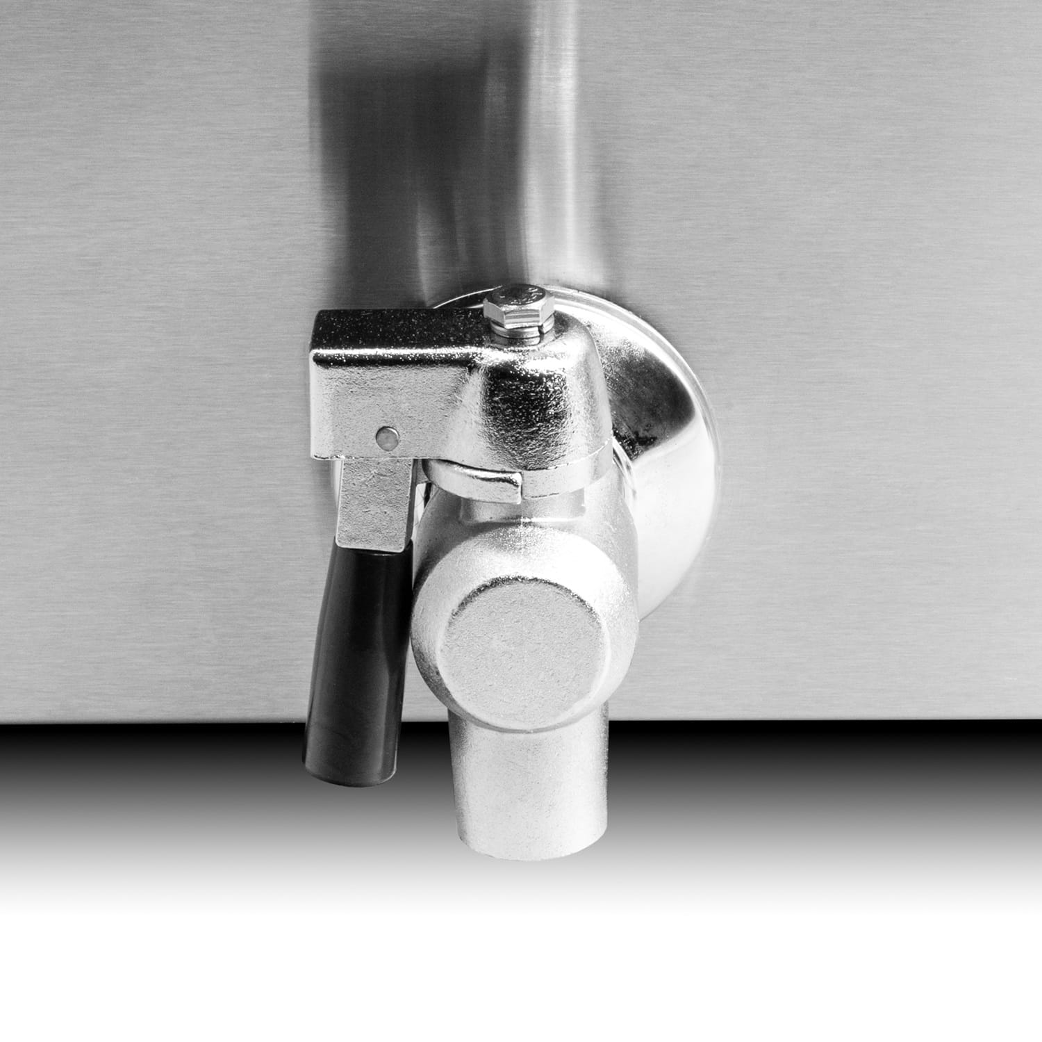 - Kran spustowy umożliwia łatwe opróżnianie wody z urządzenia po ugotowaniu makaronu.