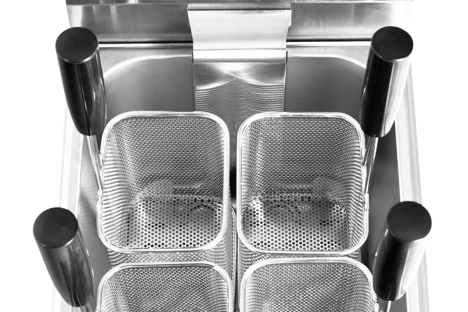 - 4 kosze ze stali nierdzewnej (o wymiarach 125x100x150 mm każdy) umożliwiają gotowanie różnych rodzajów makaronu jednocześnie.