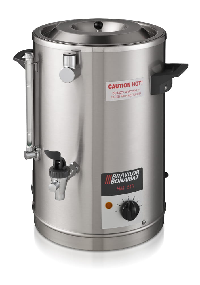 Urządzenie do podgrzewana mleka w systemie Bain-Marie (zapobiegającym przypalaniu się mleka). Elektryczne podgrzewanie z ręczną regulacją temperatury, zabezpieczeniem przed brakiem cieczy, wskaźnikiem poziomu cieczy, niekapiącym kranikiem i mieszadłem. Nie wymaga podłączenia do sieci wodociągowej.