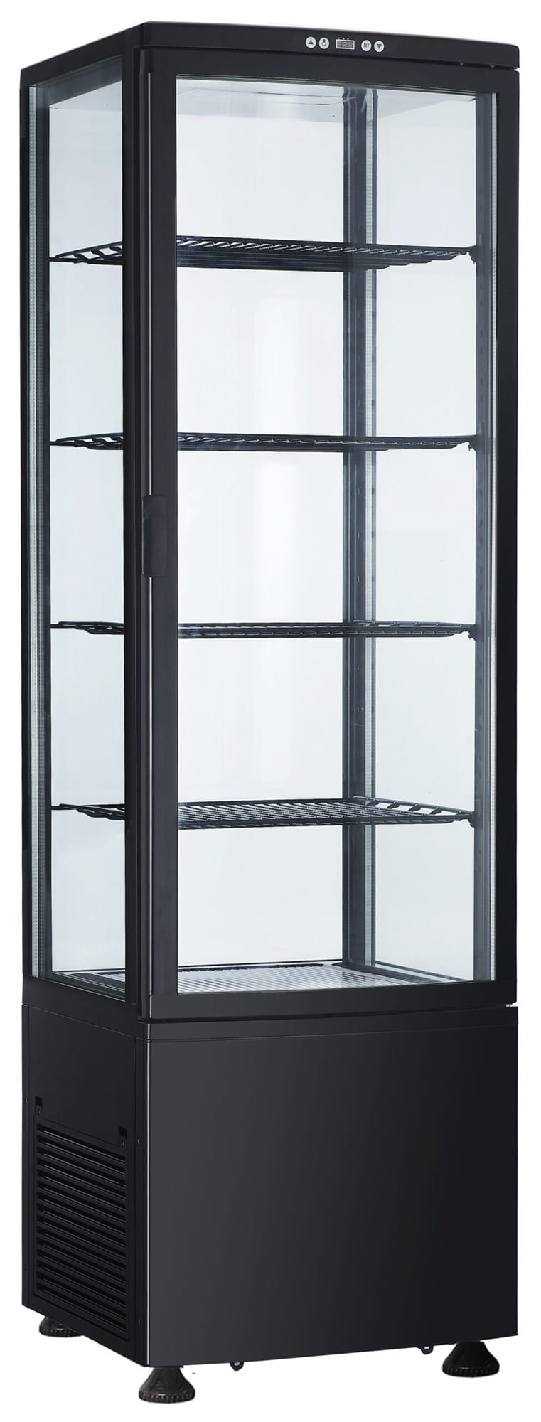 - Witryna chłodnicza 4-stronnie przeszklona o pojemności 235 l z oświetleniem wewnętrznym przeznaczona do efektownej prezentacji towaru