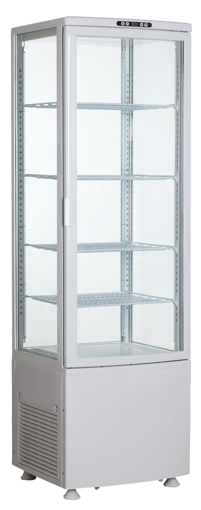 - Witryna chłodnicza 4-stronnie przeszklona o pojemności 235 l z oświetleniem wewnętrznym przeznaczona do efektownej prezentacji towaru