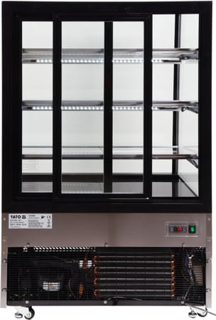• Witryna chłodnicza YATO wolnostojąca w kolorze czarnym.