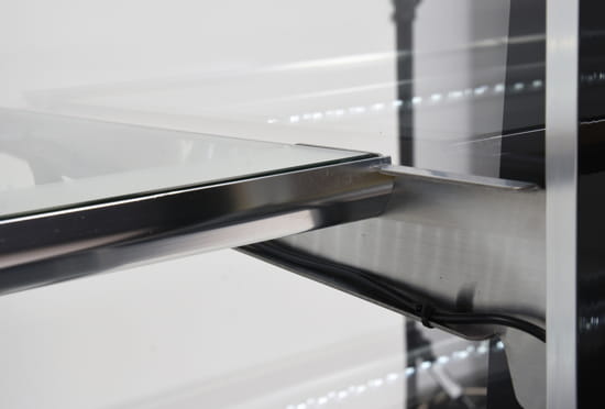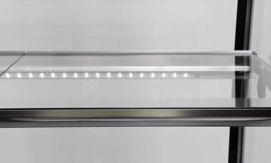 • Dodatkowo zainstalowane oświetlenie LED pod spodem każdej z półek eksponuje prezentowane potrawy w bardzo atrakcyjny sposób zachęcając klientów do ich wyboru.