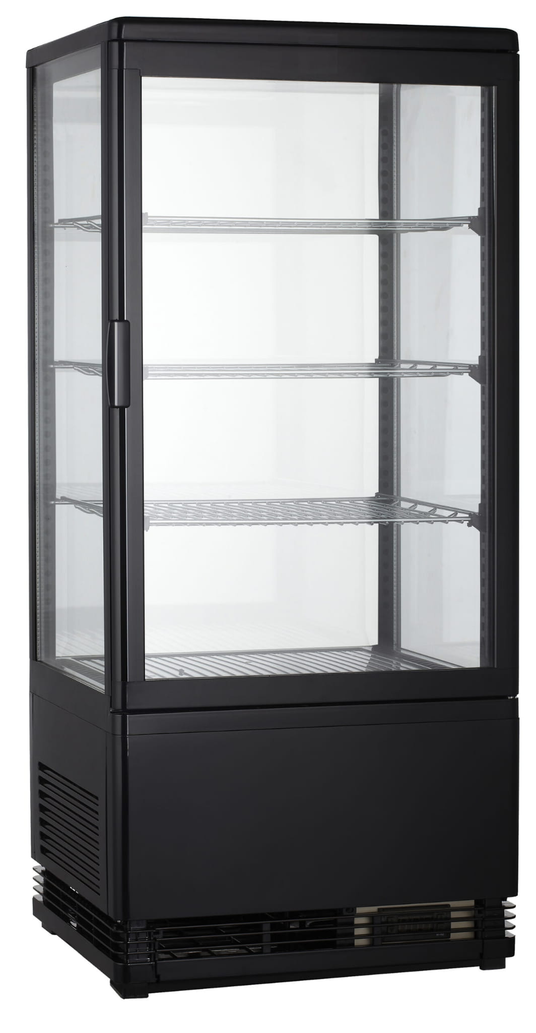 - Witryna chłodnicza o pojemności 78 litrów, przeszklona z czterech stron, idealnie nadaje się do efektownej prezentacji towarów