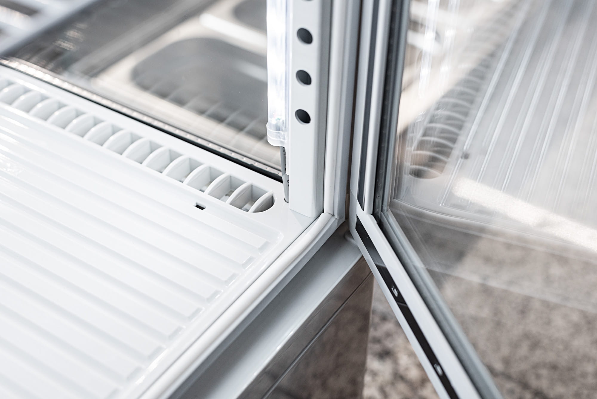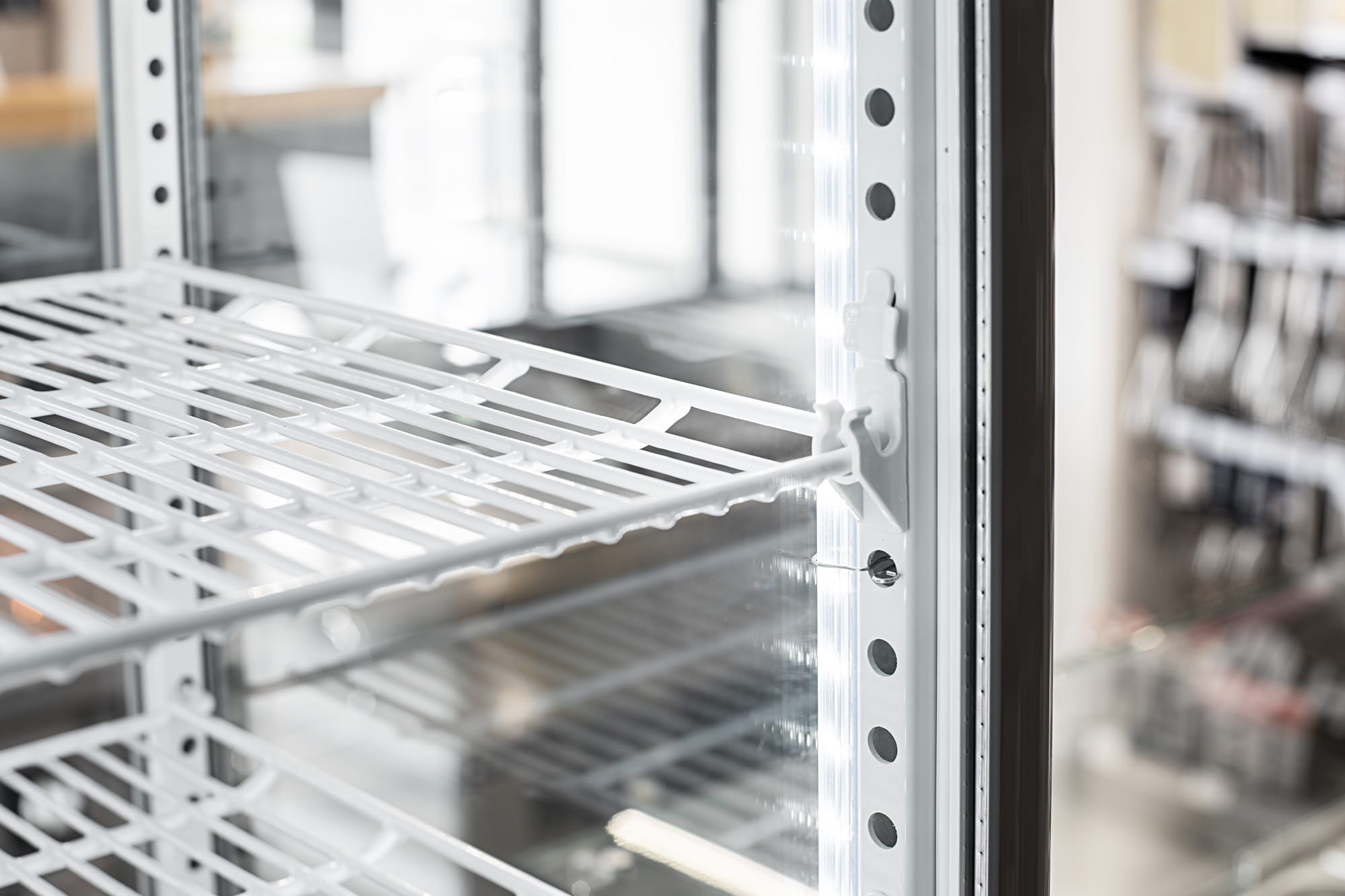 - Chłodzenie statyczne wspomagane wentylatorem zapewnia doskonałe rozłożenie temperatury wewnątrz witryny
