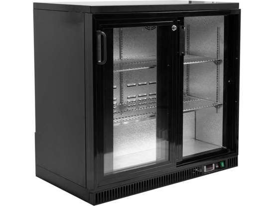 Witryna chłodnicza do butelek 2-drzwiowa czarna | drzwi przesuwne | 920x515x905 | 227L |