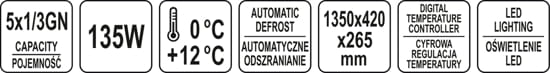 Witryna chłodnicza nastawna | 5x1/3 GN | 1350x420x265