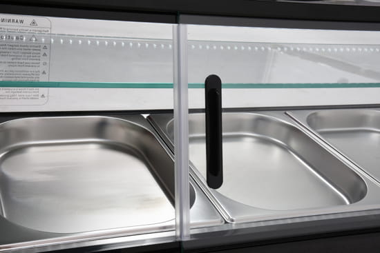 - Dostęp do pojemników za pomocą przesuwanych szklanych drzwiczek