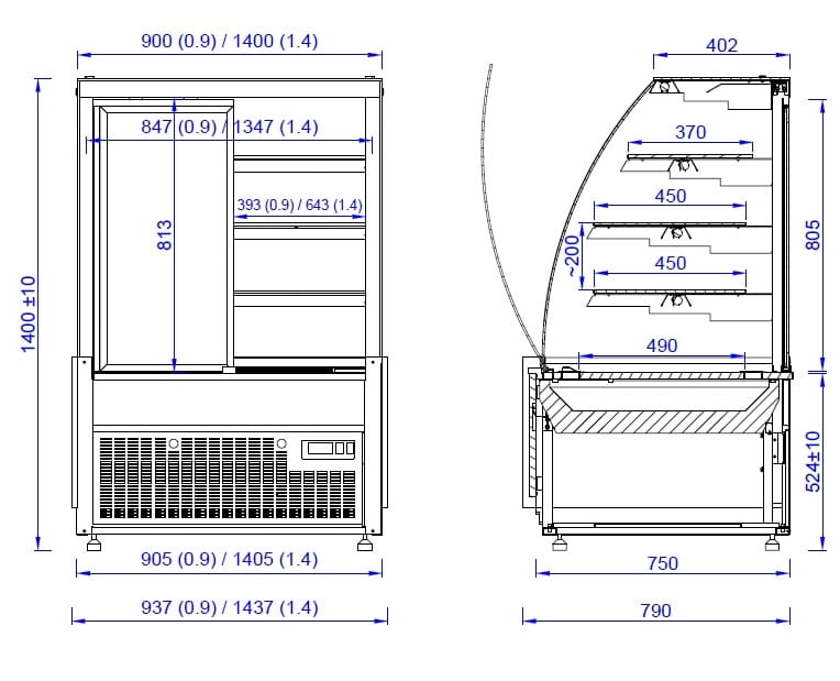 Witryna cukiernicza EPICA 0.9 | 937x790x1400 mm