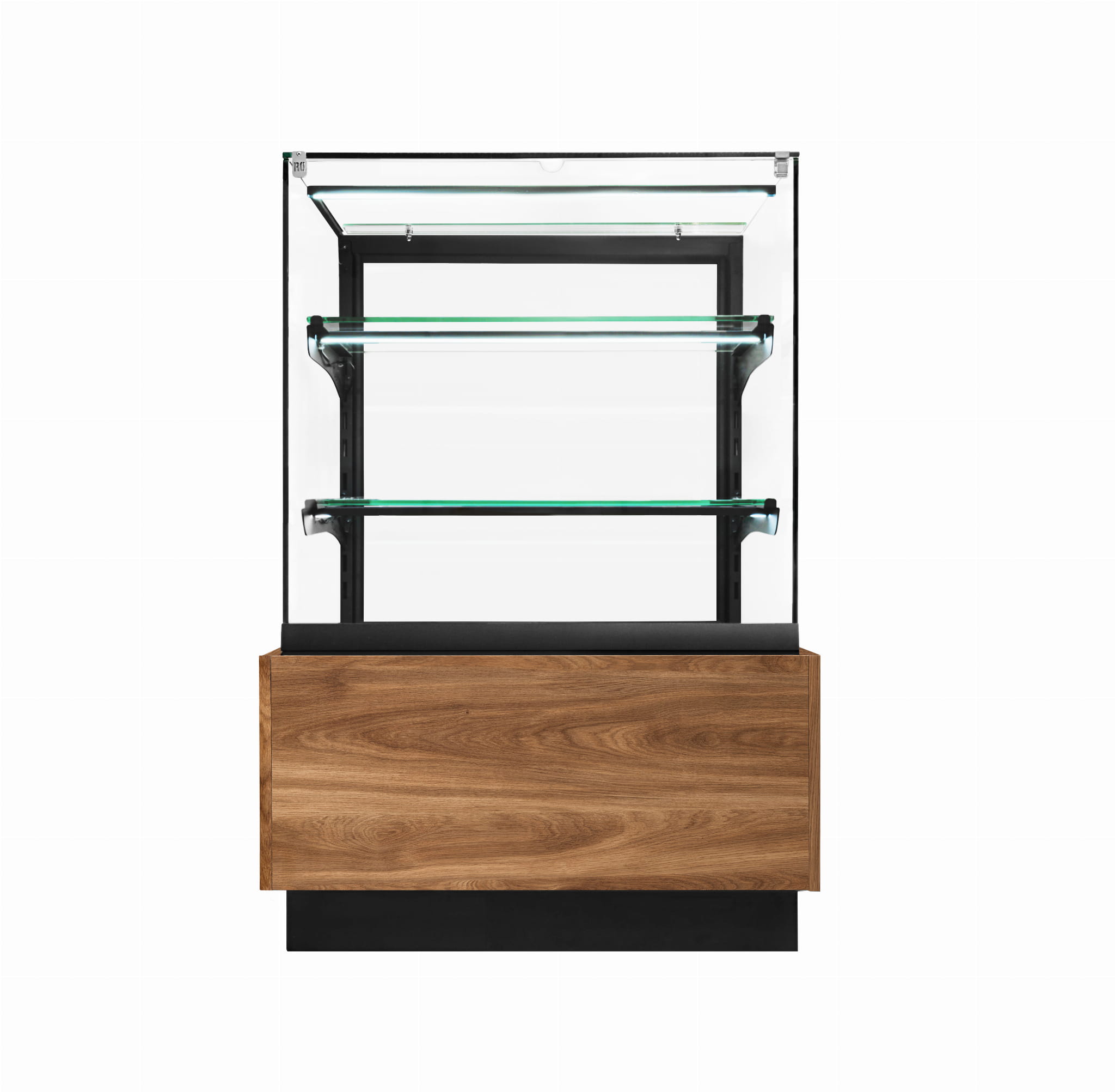 - Oświetlenie LED górne oraz na każdej półce o delikatnej, ciepłej barwie doskonale podkreśla prezentowane produkty