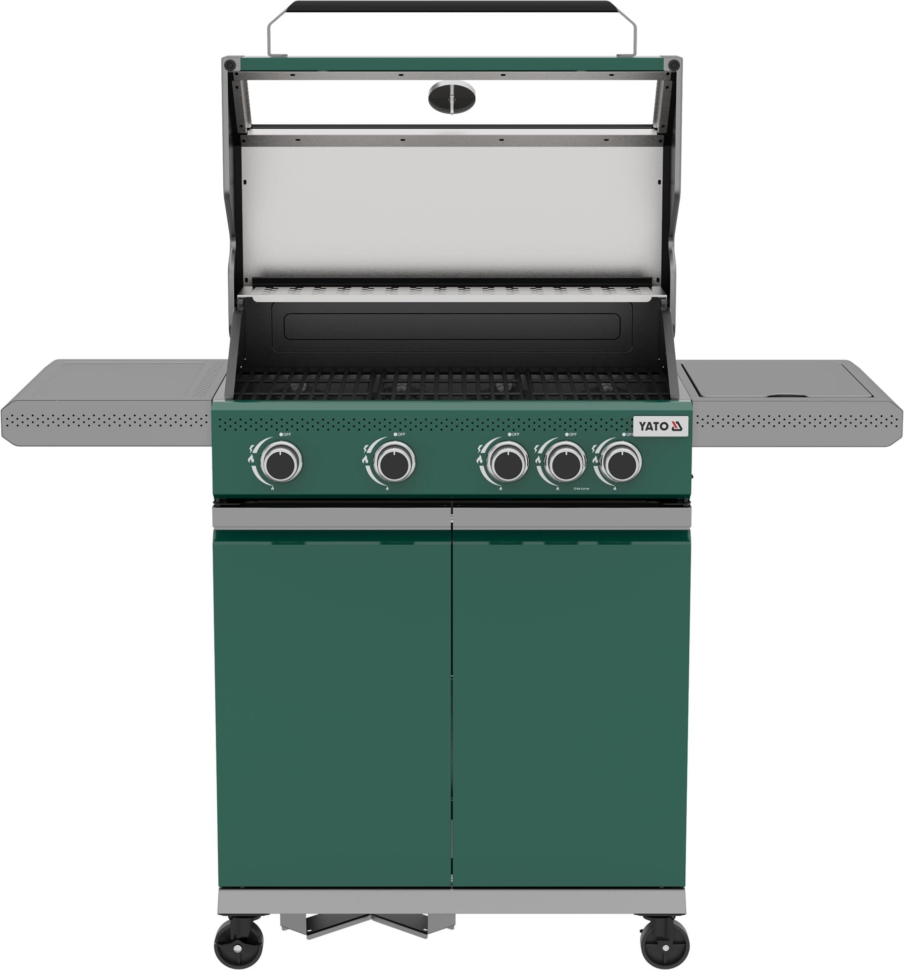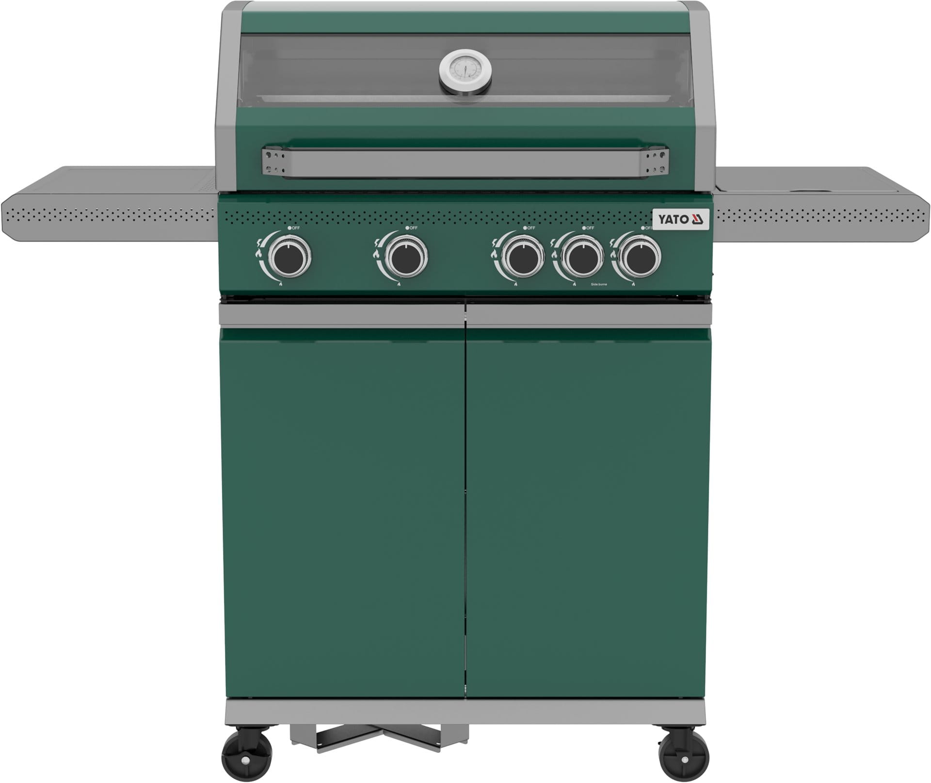 Wolnostojący grill gazowy ITAMI 4+1 zielony | z szybą | 14,5 kW | 1380x580x1180 mm