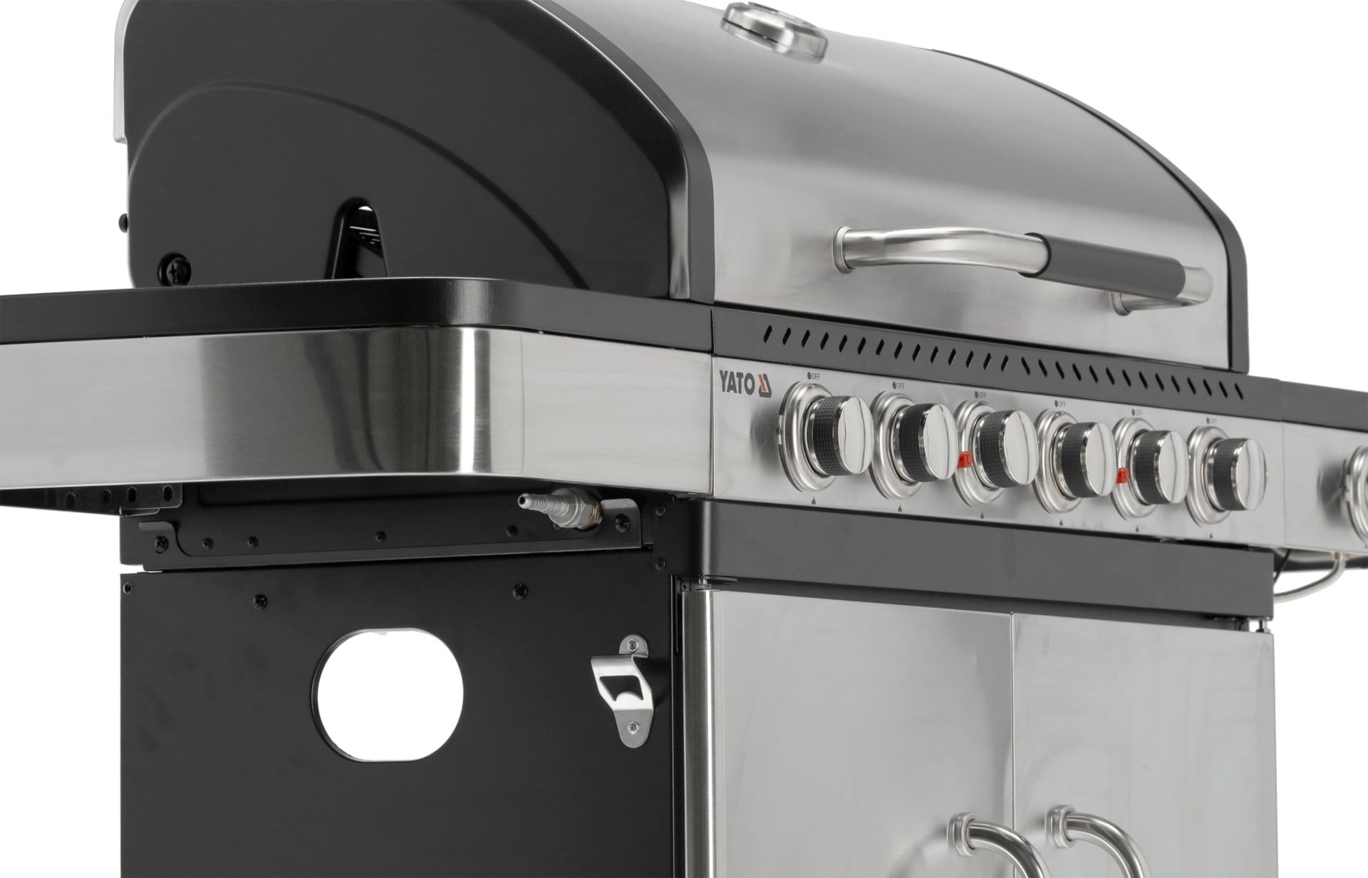 - 6 palników głównych ze stali nierdzewnej, każdy o mocy 3 kW, palnik boczny o mocy 2,2 kW, łączna moc: 20,2 kW