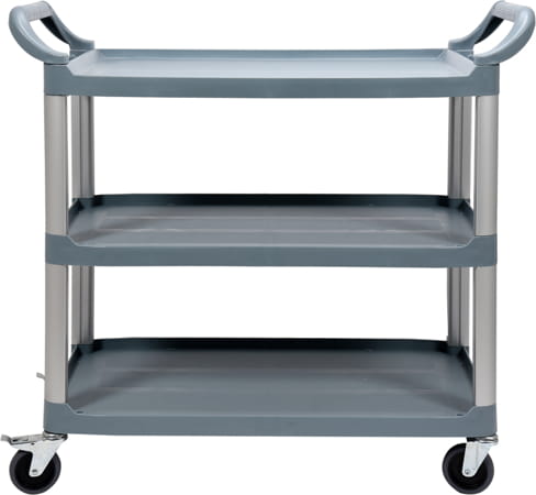- Rama wózka wykonana jest z zaokrąglonych profili aluminiowych a blaty z wysokiej jakości polietylenu. Gwarantuje to wysokie walory użytkowania oraz łatwość utrzymania w czystości. Bez problemu można użytkować go na zewnątrz. Pod spodem każdej półki zastosowano specjalne przetłoczenia wzmacniające konstrukcję i zwiększające nośność, która może wynieść nawet do 100kg.