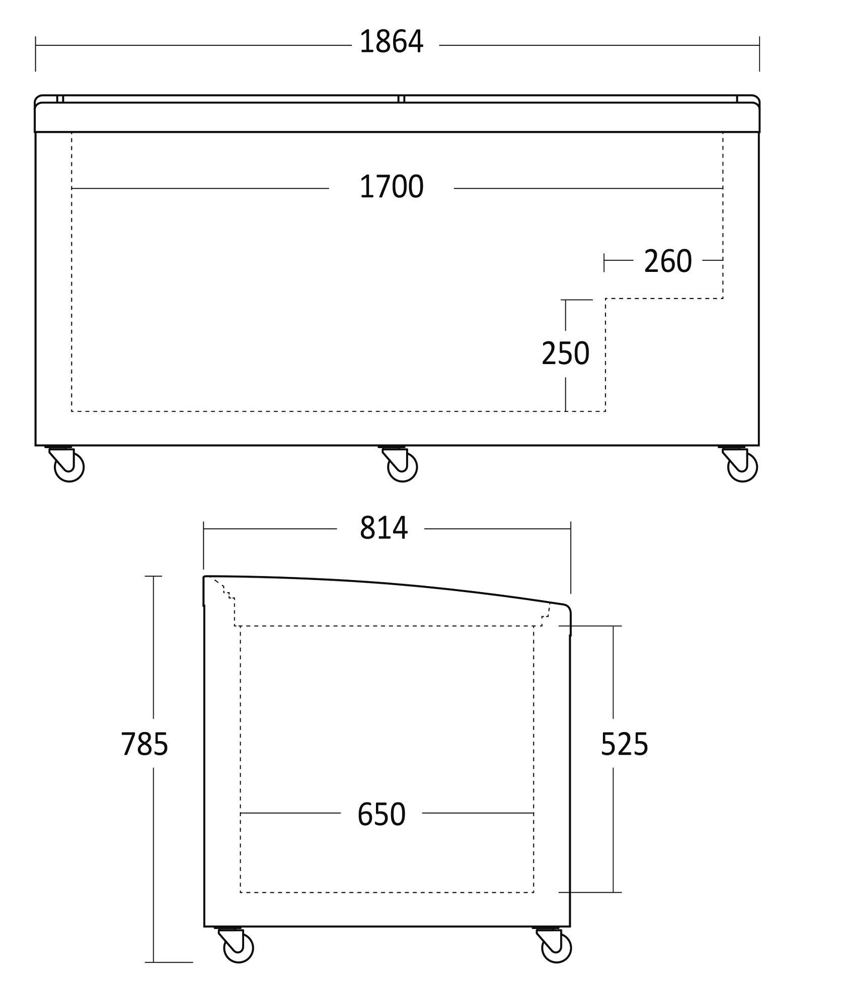 - Wymiary wewnętrzne [mm]: 1700x655x505