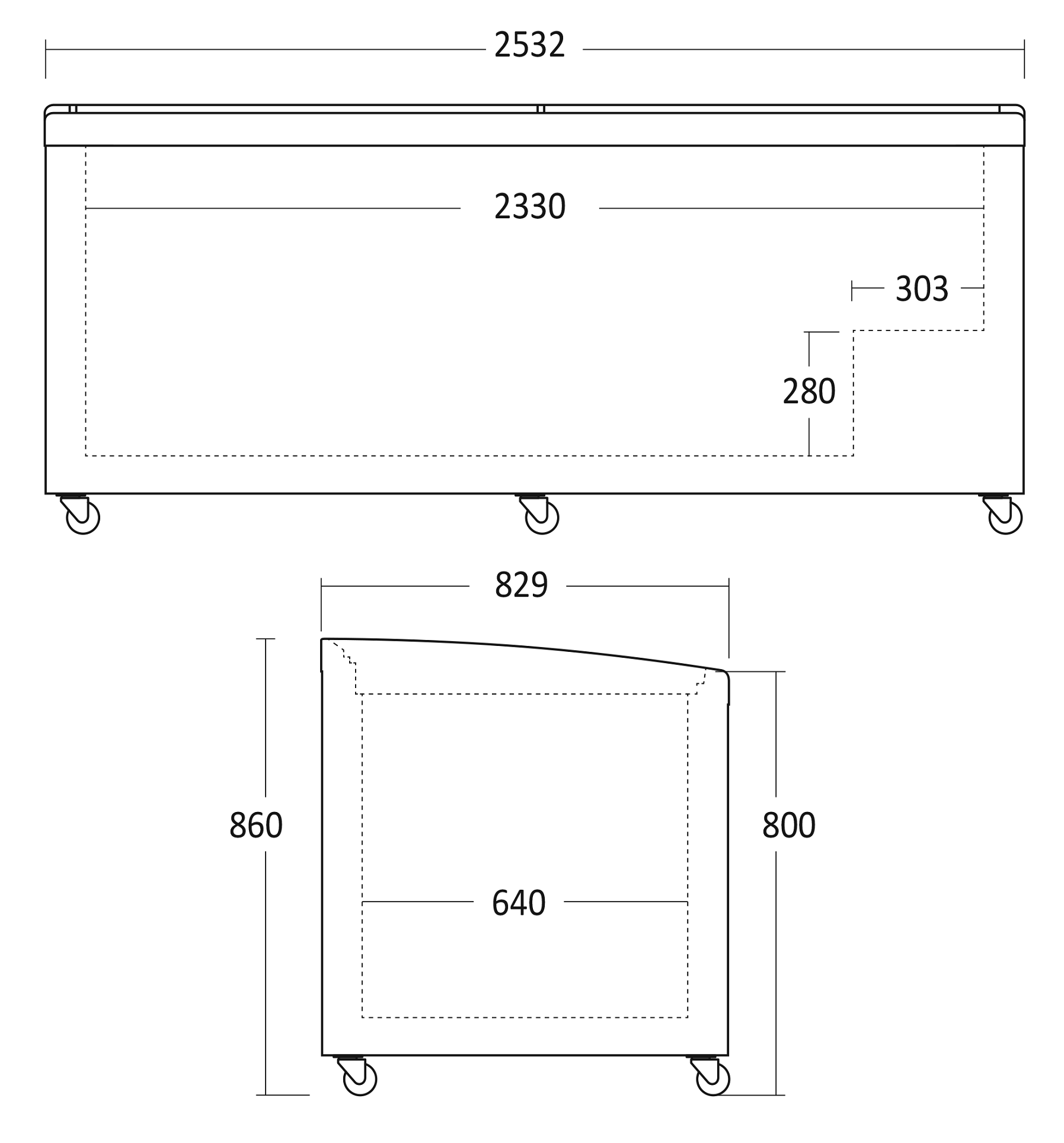 - Wymiary zewnętrzne [mm]: 2532x829x860