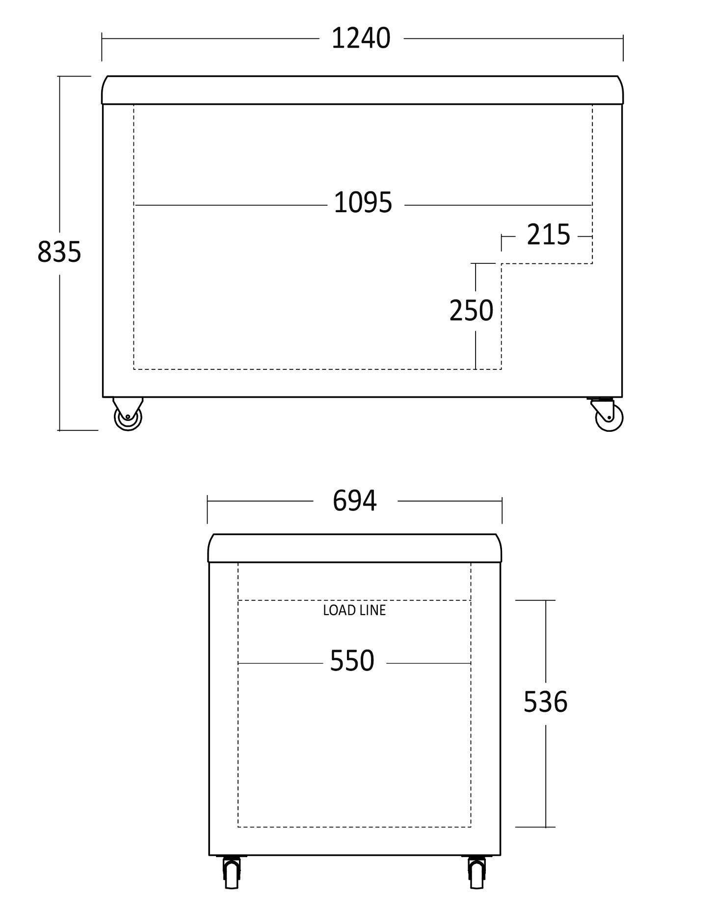 - Wymiary wewnętrzne [mm]: 1095x550x636