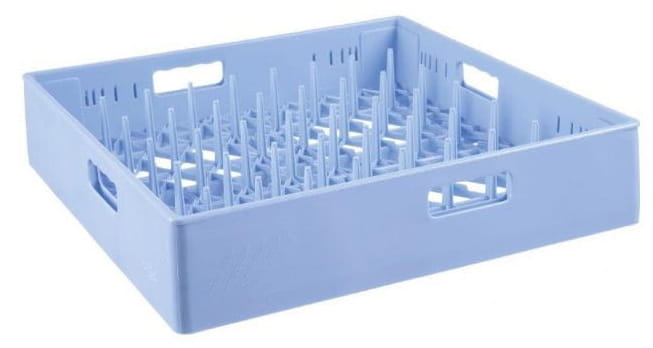 - 1x kosz z bolcami na talerze głębokie i płytkie w układzie 5×8 szt,, 500×500x(H)105 mm