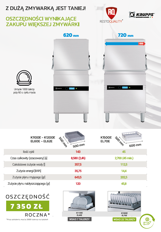 - Zmywarki firmy Krupps to 50-letnie doświadczenie włoskiego producenta w budowie tego typu urządzeń, co wiąże się z bardzo niską awaryjnością oraz innowacyjnymi rozwiązaniami wpływającymi na jakość mycia oraz niskie zużycie energii.