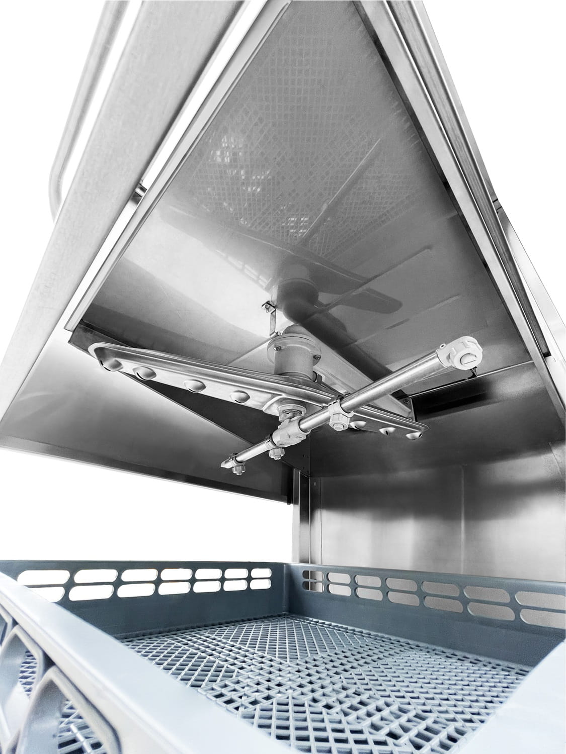 - Modułowa konstrukcja zapewniająca łatwe czyszczenie. Zmywarka została zaprojektowana w taki sposób, aby umożliwić łatwe czyszczenie, poprzez możliwość demontażu ramion myjących, płuczących oraz filtrów